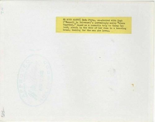 Zasu Pitts Alone Together in Gingham Dress Original 8x10 Photo Stamped with Snipe 1935 Near Mint Condition This item is an ORIGINAL 8x10 photo from the historic archives of Silver Screen Mementos. This original photograph was made in the actual year the film, television show or event was produced. The movie studios produced publicity photographs for distribution to the press, photo agencies and publicity departments to advertise the film/tv show or event. Very often original photos have press release information on the reverse of the photo - movie credits, description of the scene, event and people involved. This is a historic piece of cinema art and is being offered from one collector to another, no rights given or implied. Silver Screen are gradually releasing thousands of Original Photographs, Transparencies, Negatives, Lobby Cards, Posters, Magazines and other memorabilia from our historic archive. Powered by SixBit's eCommerce Solution Listing and template services provided by inkFrog