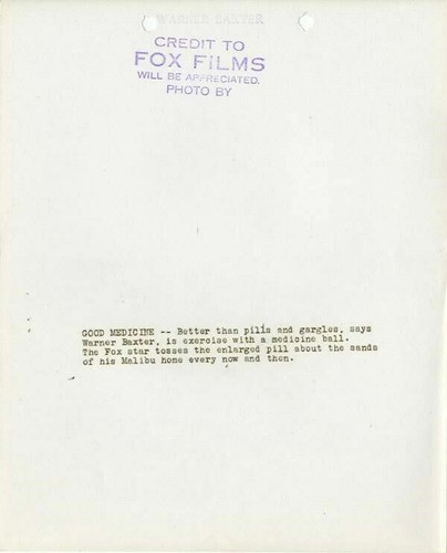 Warner Baxter barechested exercising Malibu Beach rare Original 8x10 Keybook Photo Stamped Snipe VG Condition (hole punches from key book) This item is an ORIGINAL 8x10 photo from the historic archives of Silver Screen Mementos. This original photograph was made in the actual year the film, television show or event was produced. The movie studios produced publicity photographs for distribution to the press, photo agencies and publicity departments to advertise the film/tv show or event. Very often original photos have press release information on the reverse of the photo - movie credits, description of the scene, event and people involved. This is a historic piece of cinema art and is being offered from one collector to another, no rights given or implied. Silver Screen are gradually releasing thousands of Original Photographs, Transparencies, Negatives, Lobby Cards, Posters, Magazines and other memorabilia from our historic archive. Powered by Six Bit's e Commerce Solution Listing and template services provided by ink Frog