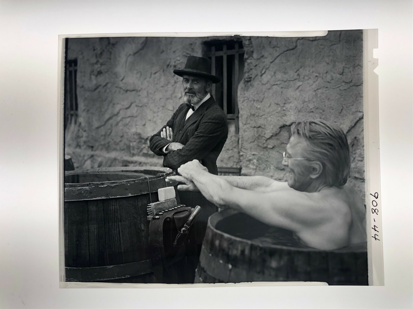 Kirk Douglas in bath Henry Fonda There Was A Crooked Man Original 5x4 Negative, great image from the 1970 western, an original Acetate safety film 5x4 B/W negativeThis is an Original studio or photographer's 4x5 inches Black and white transparency from our historic archive. This is a real collector's item and would make superb quality photographs or prints. This would also be a great addition to any collection or image archive. This original negative Black and white transparency is in Excellent condition. This collector's item is being sold from one collector to another, no rights are given or implied. Silver Screen Mementos are gradually releasing from their vast archives thousands of original photographs, transparencies, negatives, slides, lobby cards and other movie or television memorabilia.