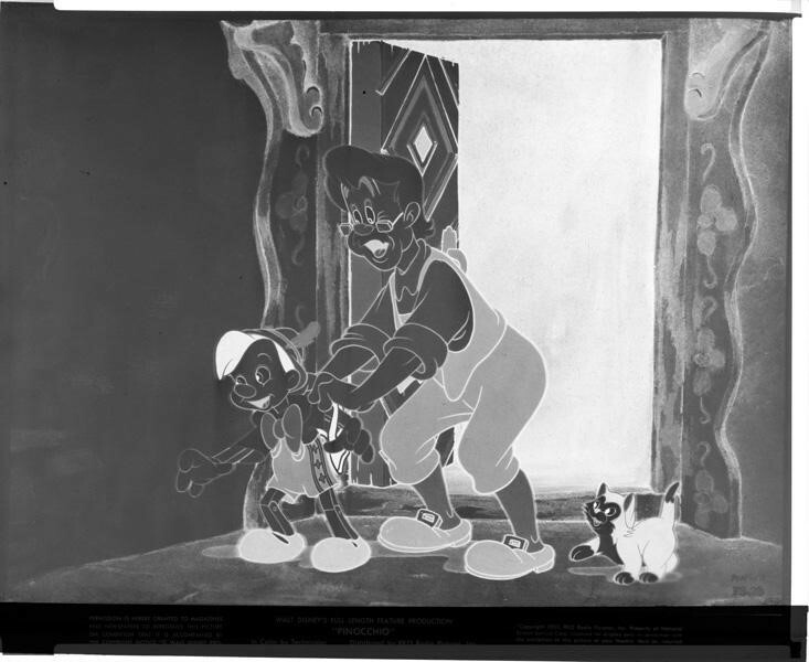 PINOCCHIO Walt Disney Animation Geppetto Figaro Cat Vintage 8x10 Studio Negative with credit caption at bottom, produced by the studio to print 8x10 photographs. This is an Original studio or photographer's 8x10 inches black and white photographic negative from our historic archive. This is a real collector's item and would make superb quality photographs or prints. This would also be a great addition to any collection or image archive. This original negative black and white photographic negative is in Excellent condition. This collector's item is being sold from one collector to another, no rights are given or implied. Silver Screen Mementos are gradually releasing from their vast archives thousands of original photographs, transparencies, negatives, slides, lobby cards and other movie or television memorabilia.
