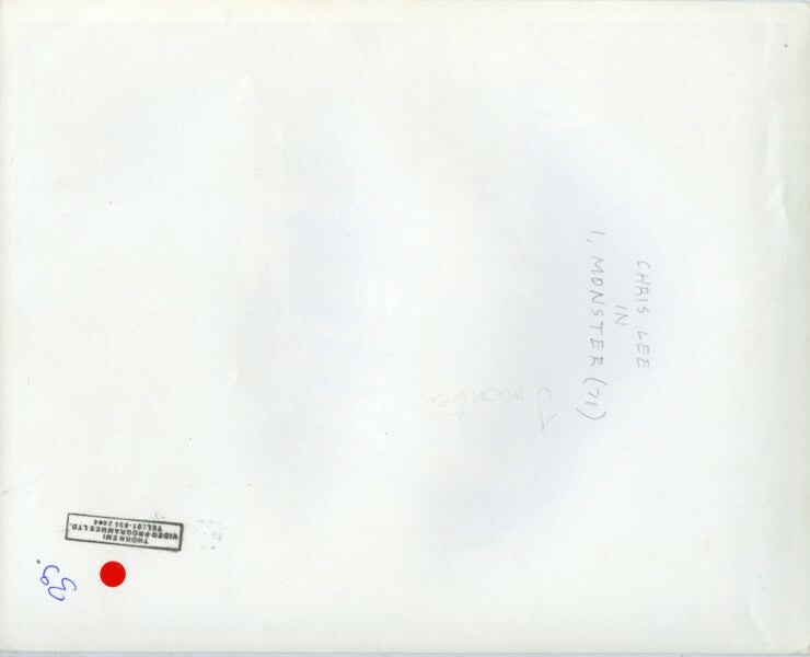 I Monster Christopher Lee Amicus Horror 1971 Original Stamped 8x10 Photograph Vg/Near Mint Condition This item is an ORIGINAL 8x10 photo from the historic archives of Silver Screen Mementos. This original photograph was made in the actual year the film, television show or event was produced. The movie studios produced publicity photographs for distribution to the press, photo agencies and publicity departments to advertise the film/tv show or event. Very often original photos have press release information on the reverse of the photo - movie credits, description of the scene, event and people involved. This is a historic piece of cinema art and is being offered from one collector to another, no rights given or implied. Silver Screen are gradually releasing thousands of Original Photographs, Transparencies, Negatives, Lobby Cards, Posters, Magazines and other memorabilia from our historic archive.
