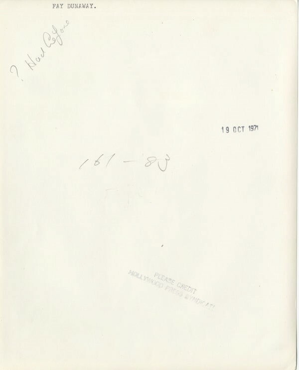 Faye Dunaway Glamour Portrait in sunglasses The Arrangement Original 8x10 Photo VG/Near Mint Condition This item is an ORIGINAL 8x10 photo from the historic archives of Silver Screen Mementos. This original photograph was made in the actual year the film, television show or event was produced. The movie studios produced publicity photographs for distribution to the press, photo agencies and publicity departments to advertise the film/tv show or event. Very often original photos have press release information on the reverse of the photo - movie credits, description of the scene, event and people involved. This is a historic piece of cinema art and is being offered from one collector to another, no rights given or implied. Silver Screen are gradually releasing thousands of Original Photographs, Transparencies, Negatives, Lobby Cards, Posters, Magazines and other memorabilia from our historic archive.