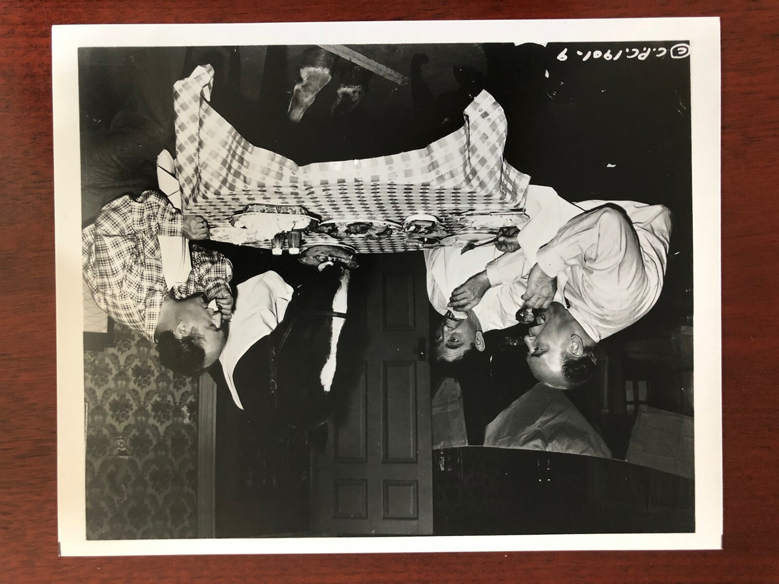 The Three Stooges Vintage 8x10 Negative & Photo Larry Joe Moe dining restaurant - This is a vintage studio 8x10 B/W Internegative and 8x10 Photo printed directly from the negative. This comes from the famed Movie Star News archive, founded by Irving Klaw ("King of the Pin Ups").This is an Original studio or photographer's 8x10 inches black and white photographic negative from our historic archive. This is a real collector's item and would make superb quality photographs or prints. This would also be a great addition to any collection or image archive. This original negative black and white photographic negative is in Excellent condition. This collector's item is being sold from one collector to another, no rights are given or implied. Silver Screen Mementos are gradually releasing from their vast archives thousands of original photographs, transparencies, negatives, slides, lobby cards and other movie or television memorabilia.