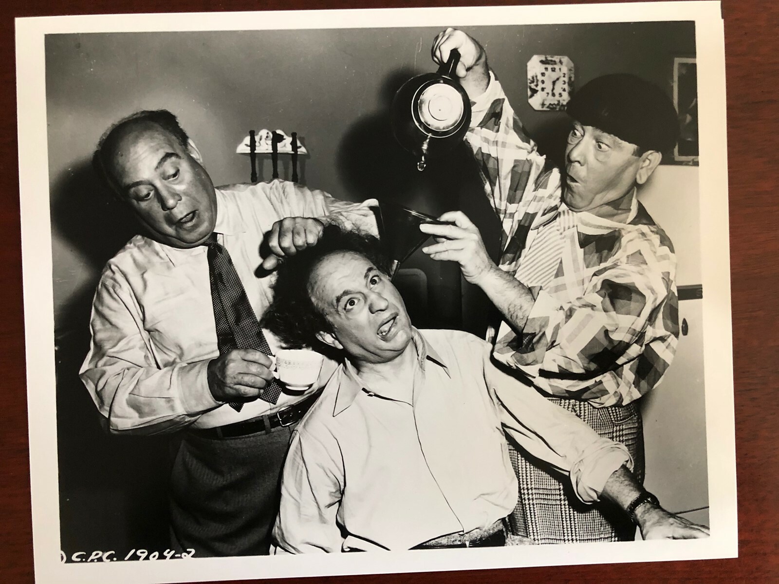 The Three Stooges Vintage 8x10 Negative and Photo Larry Shemp Moe clowning - This is a vintage studio 8x10 B/W Internegative and 8x10 Photo printed directly from the negative. This comes from the famed Movie Star News archive, founded by Irving Klaw ("King of the Pin Ups").This is an Original studio or photographer's 8x10 inches black and white photographic negative from our historic archive. This is a real collector's item and would make superb quality photographs or prints. This would also be a great addition to any collection or image archive. This original negative black and white photographic negative is in Excellent condition. This collector's item is being sold from one collector to another, no rights are given or implied. Silver Screen Mementos are gradually releasing from their vast archives thousands of original photographs, transparencies, negatives, slides, lobby cards and other movie or television memorabilia.