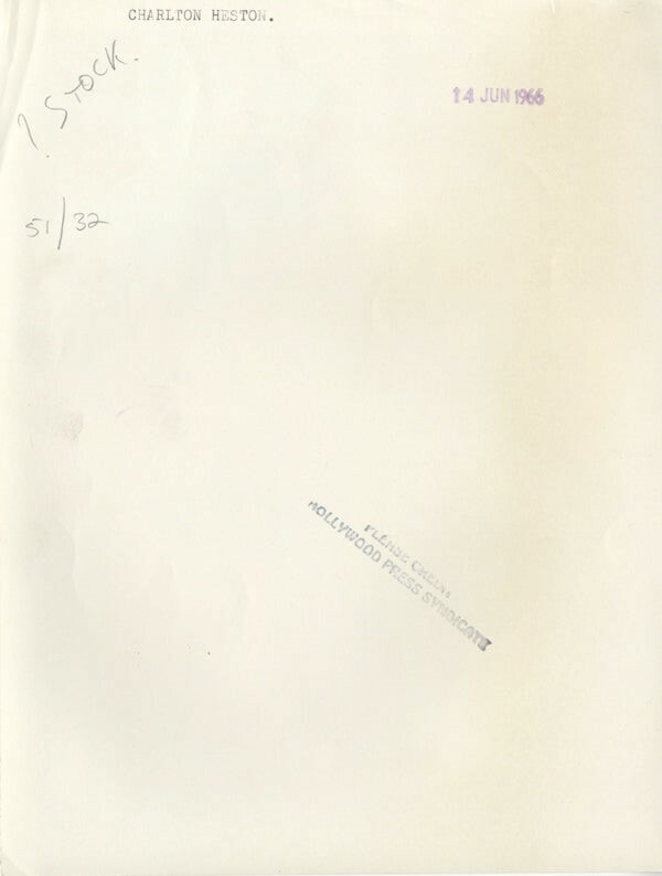 Charlton Heston Vintage Striking Handsome Portrait Original 8x10 Photo 1966 VG/Near Mint Condition (Border Trim) This item is an ORIGINAL 8x10 photo from the historic archives of Silver Screen Mementos. This original photograph was made in the actual year the film, television show or event was produced. The movie studios produced publicity photographs for distribution to the press, photo agencies and publicity departments to advertise the film/tv show or event. Very often original photos have press release information on the reverse of the photo - movie credits, description of the scene, event and people involved. This is a historic piece of cinema art and is being offered from one collector to another, no rights given or implied. Silver Screen are gradually releasing thousands of Original Photographs, Transparencies, Negatives, Lobby Cards, Posters, Magazines and other memorabilia from our historic archive.