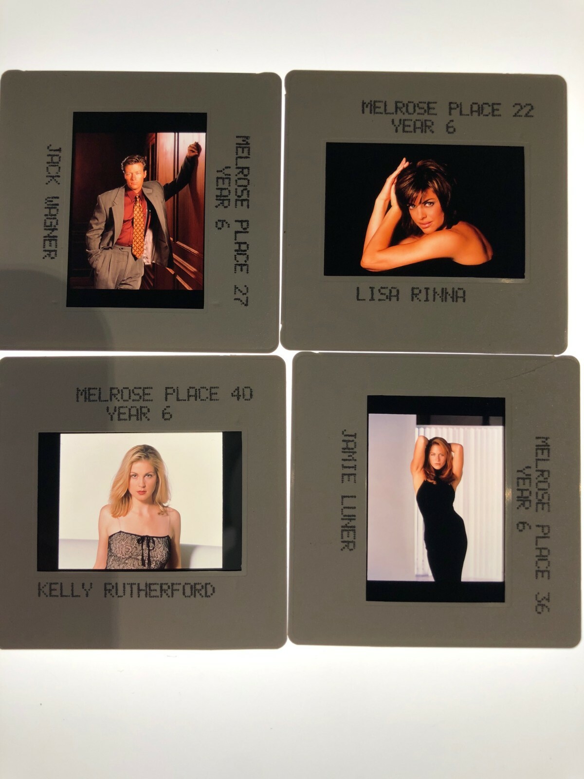 Melrose Place Lot Collection of 20 Original 35mm Transparency Slides featuring rare gallery portraits of Jamie Luner, Jack Wagner, Lisa Rinna and Kelly Rutherford from Season 6 of the hit TV show. . This listing is for all 20 transparency slides in a lot/collection. . - These are vintage 35mm color slide transparency from our historic archive. This is a real collectors item and would make superb quality photographs or prints. This would also be a great addition to any collection or image archive. The transparency is in excellent condition. This collectors item is being sold from one collector to another, no rights are given or implied. Silver Screen Archives are gradually releasing from their vast archives thousands of original photographs, transparencies, negatives, slides, lobby cards and other movie or television memorabilia. Listing and template services provided by inkFrog