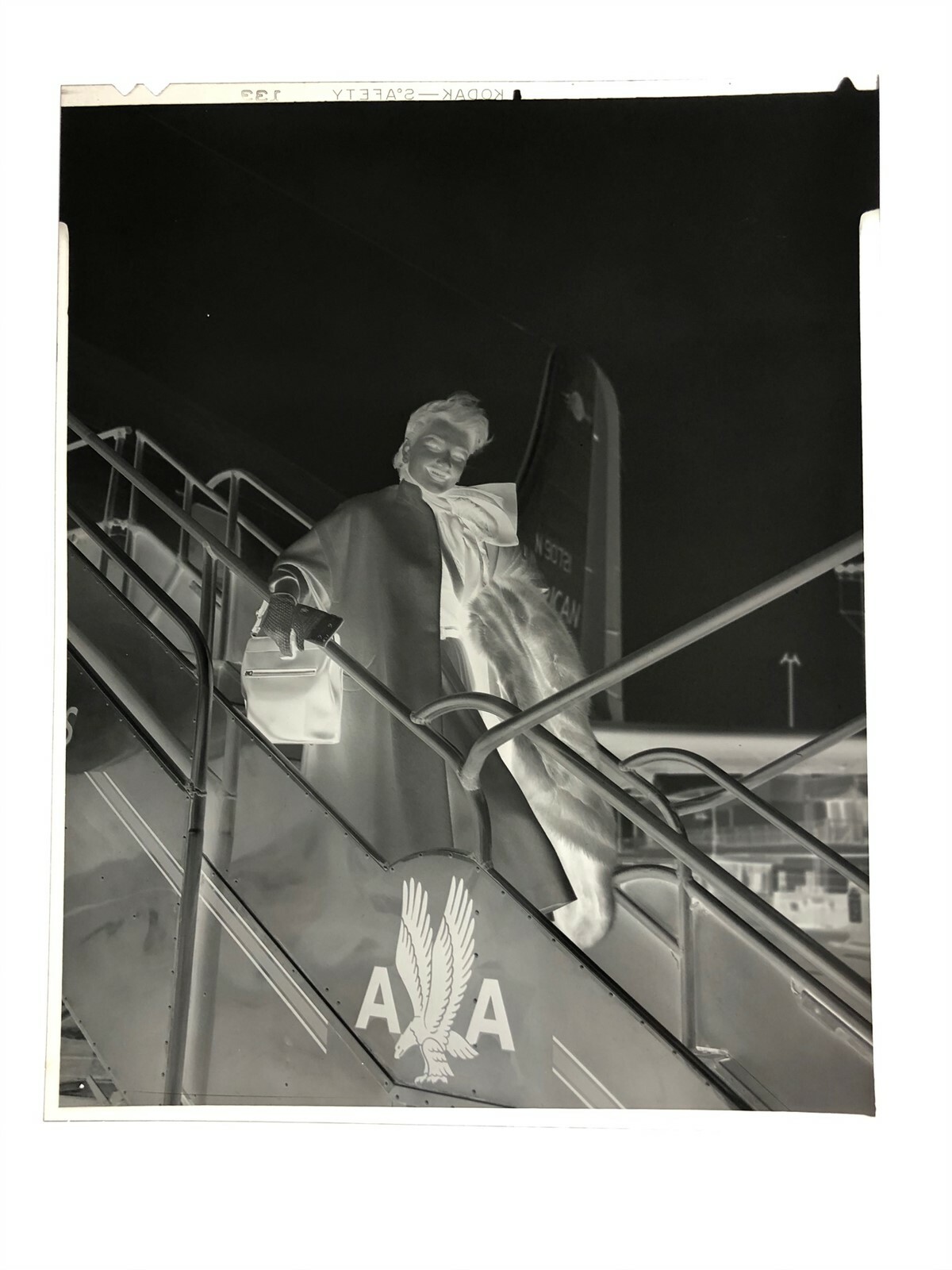 Anne Baxter Vintage American Airlines Plane Candid Photo Original 5x4 Camera NegativeThis is an original studio or photographer's 4x5 inches Black and white photographic negative from our historic archive. This is a real collector's item and would make superb quality photographs or prints. This would also be a great addition to any collection or image archive. This original Black and white photographic negative is in Excellent condition. This collector's item is being sold from one collector to another, no rights are given or implied. Silver Screen Mementos are gradually releasing from their vast archives thousands of original photographs, transparencies, negatives, slides, lobby cards and other movie or television memorabilia.