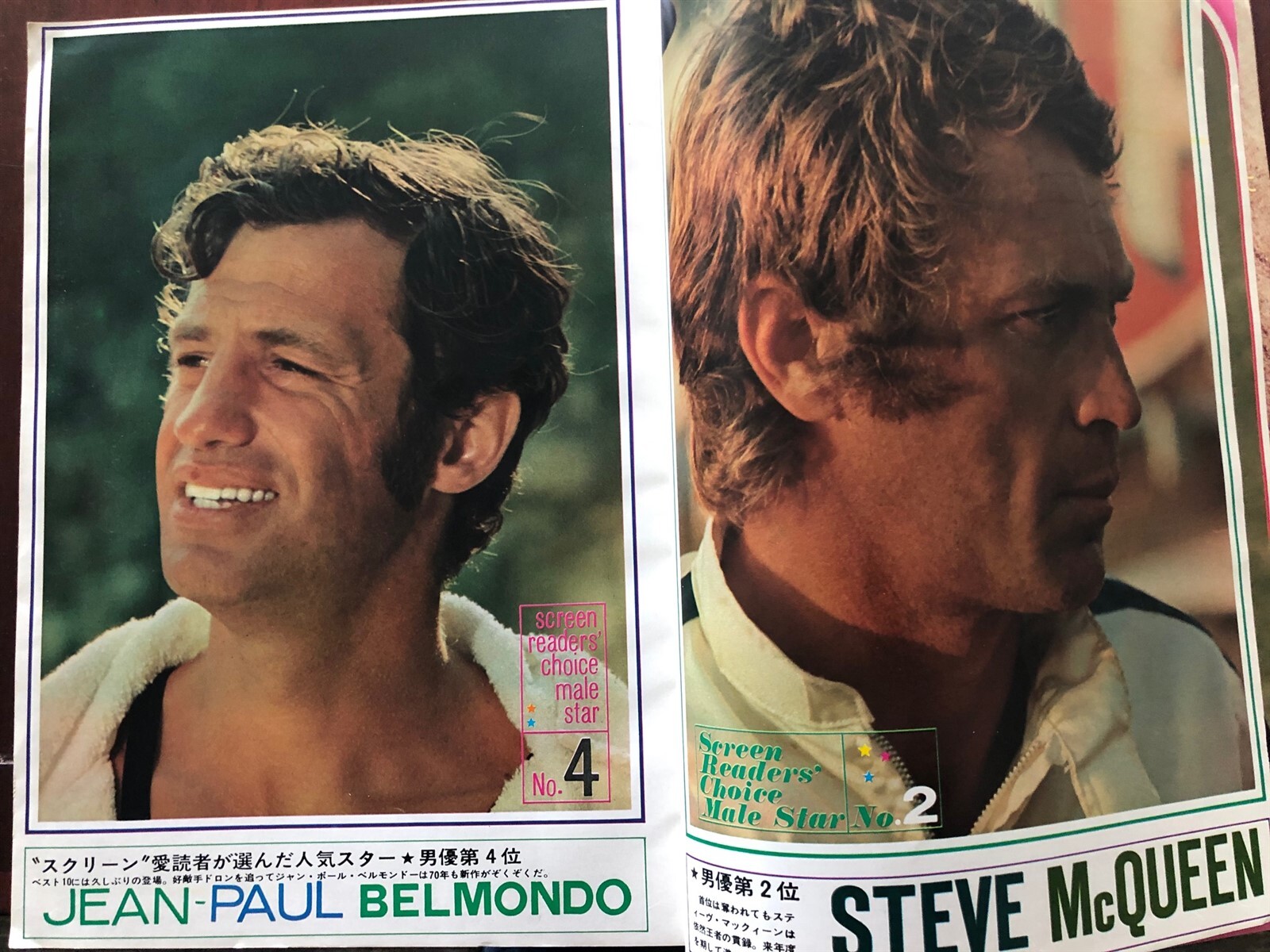 Screen Japanese Magazine264 pages complete issue May 1970 with color and b/w pictures of Joanna Shimkus (Cover) Alain Delon pullout Poster, Audrey Hepburn, Steve McQueen, Jean-Paul Belmondo, The Great Escape pullout poster, Katharine Ross, Leonard Whiting, Olivia Hussey, Gregory Peck, Claudia Cardinale etc. A real Collectors’ item being released from our historic archives, this is a complete vintage magazine. Silver Screen Mementos are gradually releasing from their vast archives thousands of original photographs, transparencies, negatives, slides, lobby cards, magazines, brochures, press books and other movie or television memorabilia. This collector's item is being sold from one collector to another, no rights are given or implied. Silver Screen Mementos are gradually releasing from their vast archives thousands of original photographs, transparencies, negatives, slides, lobby cards and other movie or television memorabilia.