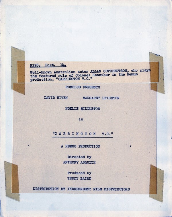 Allan Cuthbertson Carrington V.C. Court Martial 1954 Original Photo with snipe VG/Near Mint This item is an ORIGINAL 8x10 photo from the historic archives of Silver Screen Mementos. This original photograph was made in the actual year the film, television show or event was produced. The movie studios produced publicity photographs for distribution to the press, photo agencies and publicity departments to advertise the film/tv show or event. Very often original photos have press release information on the reverse of the photo - movie credits, description of the scene, event and people involved. This is a historic piece of cinema art and is being offered from one collector to another, no rights given or implied. Silver Screen are gradually releasing thousands of Original Photographs, Transparencies, Negatives, Lobby Cards, Posters, Magazines and other memorabilia from our historic archive.