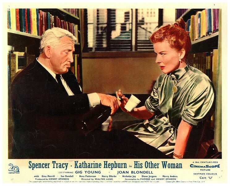 His Other Woman aka Desk Set Original Lobby Card Spencer Tracy, Katharine Hepburn, Gig Young, Joan Blondell, Dina Merrill 1957 VG Condition Silver Screen Mementos are pleased to be able to offer this authentic original Lobby Card measuring 8x10 inches. This lobby card is from Great Britain and was printed during the actual year the film was released in movie theaters. The lobby card (also known as Front of House/ FOH card in the UK) was created by the film studios to publicize the movie and was intended for display outside the movie theatre in special glass display boxes. These are NOT reproductions! You are looking at a truly original piece of cinema art, a genuine collector's item. We have a huge archive of over 250,000 original lobby cards, mostly from the 1930's to the 1980's. We will be releasing many more rare gems from our vast collection, which will include lobby cards, original photographs, movie stills, magazines, brochures negatives, transparencies, slides and other collectible items of movie memorabilia.