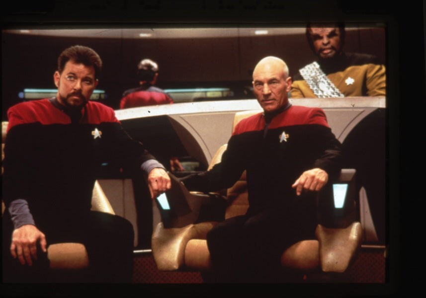 Star Trek Generations Patrick Stewart Jonathan Frakes Original 35mm Transparency Stamped Mount 1994This is an original studio or photographer's 35 mm color slide transparency from our historic archive. This is a real collector's item and would make superb quality photographs or prints. This would also be a great addition to any collection or image archive. This original color slide transparency is in Excellent condition. This collector's item is being sold from one collector to another, no rights are given or implied. Silver Screen Mementos are gradually releasing from their vast archives thousands of original photographs, transparencies, negatives, slides, lobby cards and other movie or television memorabilia.
