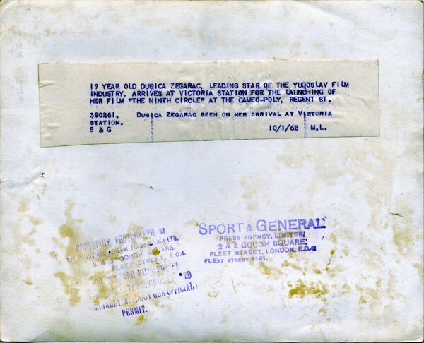 Dusica Zegarac Dušica Žegarac Yugoslavian Serbia 1962 Double Weight 8x10 Original Photo with paper caption snipe in VG Condition This item is an ORIGINAL 8x10 photo from the historic archives of Silver Screen Mementos. This original photograph was made in the actual year the film, television show or event was produced. The movie studios produced publicity photographs for distribution to the press, photo agencies and publicity departments to advertise the film/tv show or event. Very often original photos have press release information on the reverse of the photo - movie credits, description of the scene, event and people involved. This is a historic piece of cinema art and is being offered from one collector to another, no rights given or implied. Silver Screen are gradually releasing thousands of Original Photographs, Transparencies, Negatives, Lobby Cards, Posters, Magazines and other memorabilia from our historic archive.