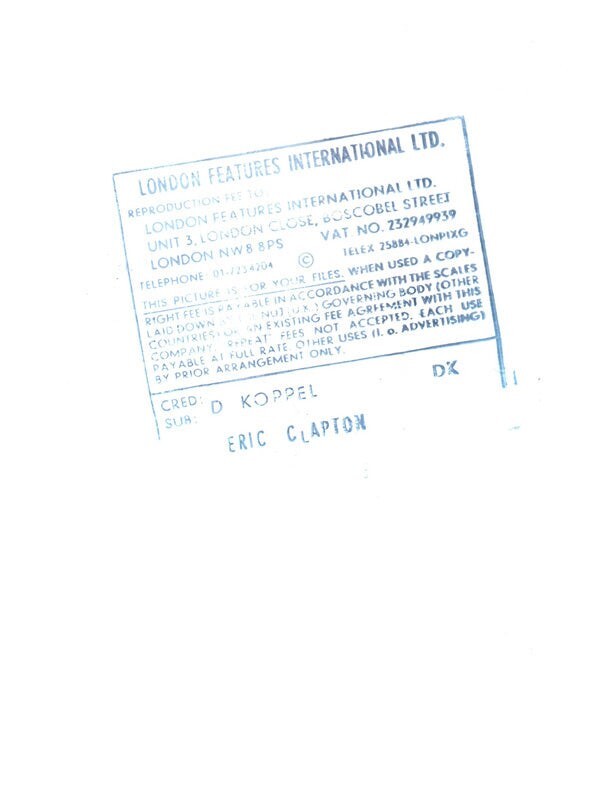 Eric Clapton Playing Fender Blackie Guitar in concert Vintage 6x8 Stamped Photo VG/Near Mint Condition This item is an ORIGINAL 8x10 photo from the historic archives of Silver Screen Mementos. This original photograph was made in the actual year the film, television show or event was produced. The movie studios produced publicity photographs for distribution to the press, photo agencies and publicity departments to advertise the film/tv show or event. Very often original photos have press release information on the reverse of the photo - movie credits, description of the scene, event and people involved. This is a historic piece of cinema art and is being offered from one collector to another, no rights given or implied. Silver Screen are gradually releasing thousands of Original Photographs, Transparencies, Negatives, Lobby Cards, Posters, Magazines and other memorabilia from our historic archive.