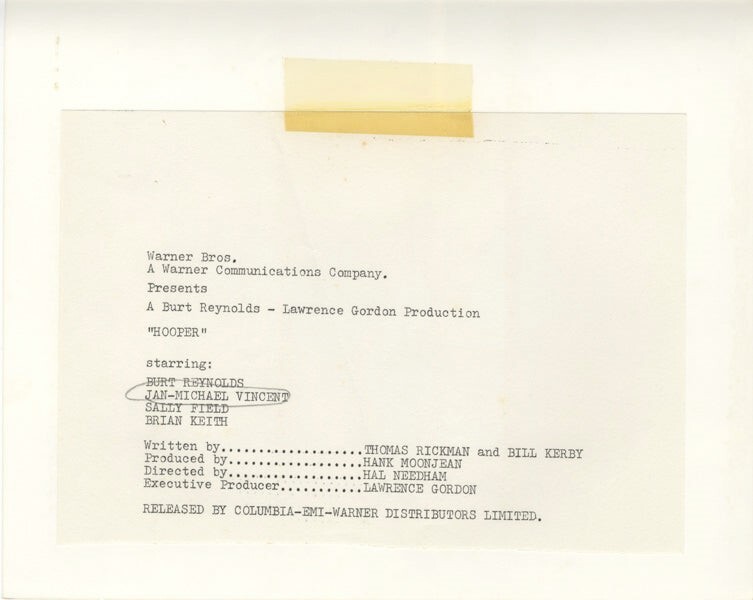 Jan-Michael Vincent Hooper Handsome Stuntman Portrait Original 8x10 Photo with Snipe 1978 Near Mint Condition This item is an ORIGINAL 8x10 photo from the historic archives of Silver Screen Mementos. This original photograph was made in the actual year the film, television show or event was produced. The movie studios produced publicity photographs for distribution to the press, photo agencies and publicity departments to advertise the film/tv show or event. Very often original photos have press release information on the reverse of the photo - movie credits, description of the scene, event and people involved. This is a historic piece of cinema art and is being offered from one collector to another, no rights given or implied. Silver Screen are gradually releasing thousands of Original Photographs, Transparencies, Negatives, Lobby Cards, Posters, Magazines and other memorabilia from our historic archive.