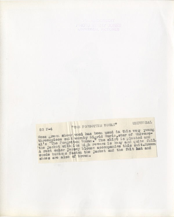 Singrid Gurie The Forgotten Woman Modeling Shoot Original 8x10 Photo with Snipe 1939 Good/VG Condition (surface marks, creasing top left edge) This item is an ORIGINAL 8x10 photo from the historic archives of Silver Screen Mementos. This original photograph was made in the actual year the film, television show or event was produced. The movie studios produced publicity photographs for distribution to the press, photo agencies and publicity departments to advertise the film/tv show or event. Very often original photos have press release information on the reverse of the photo - movie credits, description of the scene, event and people involved. This is a historic piece of cinema art and is being offered from one collector to another, no rights given or implied. Silver Screen are gradually releasing thousands of Original Photographs, Transparencies, Negatives, Lobby Cards, Posters, Magazines and other memorabilia from our historic archive.