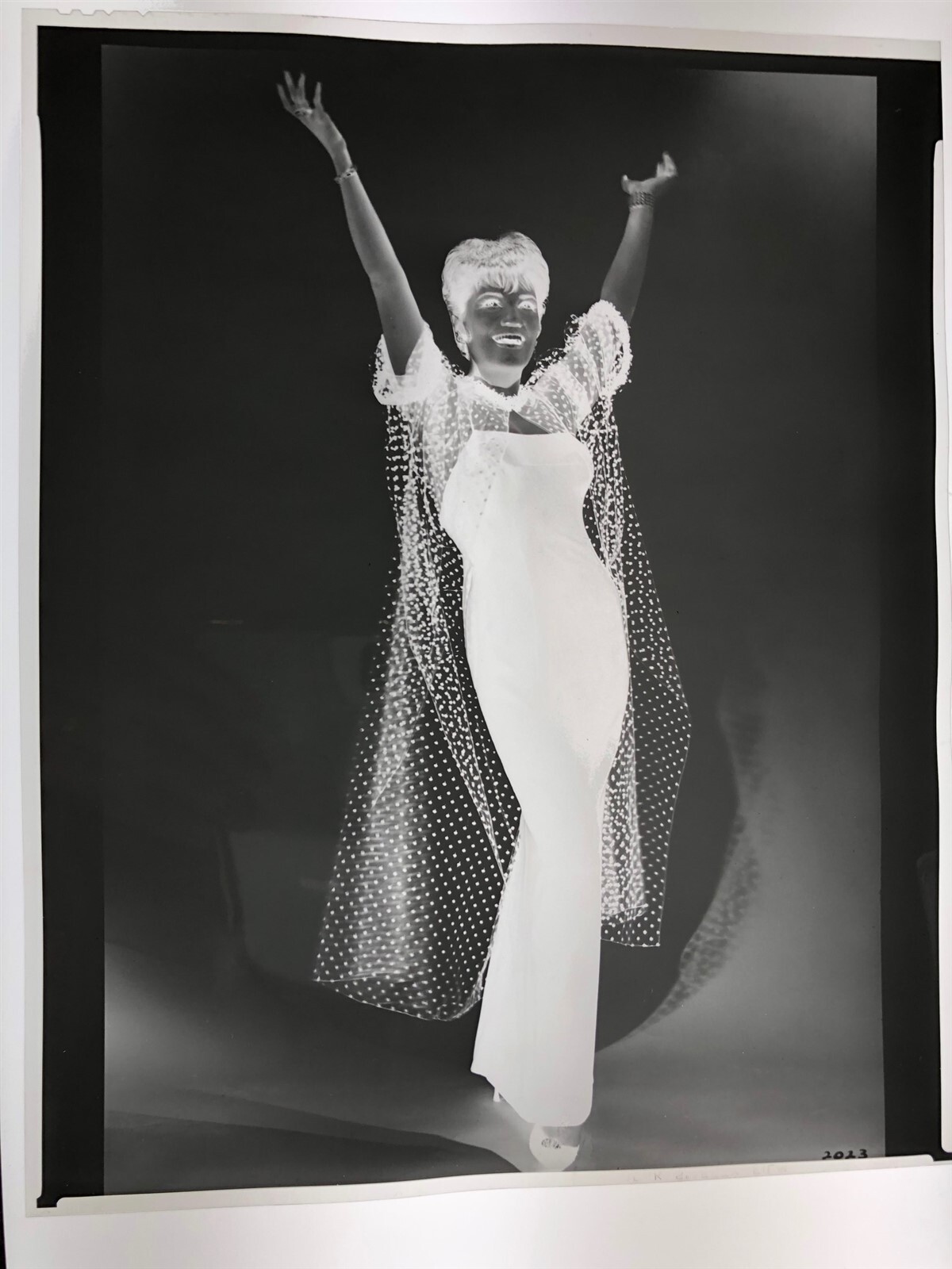 Connie Francis raising arms in singing pose Vintage 8x10 Duplicate Negative This is a vintage studio or photographer's 8x10 inch black and white photographic negative from our historic archive. This vintage duplicate negative was created from the original camera negative by the studio or photographer in order to make prints and use for publications. This is a real collector's item and would make superb quality photographs or prints. This would also be a great addition to any collection or image archive. This black and white photographic negative is in Excellent condition. This collector's item is being sold from one collector to another, no rights are given or implied. Silver Screen Mementos are gradually releasing from their vast archives thousands of original photographs, transparencies, negatives, slides, lobby cards and other movie or television memorabilia.
