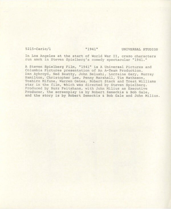 1941 Dan Aykroyd John Belushi poster concept artwork Original 8x10 Photo 1979 Steven Spielberg classic comedy Near Mint This item is an ORIGINAL 8x10 photo from the historic archives of Silver Screen Mementos. This original photograph was made in the actual year the film, television show or event was produced. The movie studios produced publicity photographs for distribution to the press, photo agencies and publicity departments to advertise the film/tv show or event. Very often original photos have press release information on the reverse of the photo - movie credits, description of the scene, event and people involved. This is a historic piece of cinema art and is being offered from one collector to another, no rights given or implied. Silver Screen are gradually releasing thousands of Original Photographs, Transparencies, Negatives, Lobby Cards, Posters, Magazines and other memorabilia from our historic archive.
