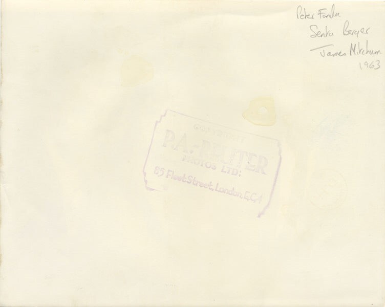 Peter Fonda Senta Berger James Mitchum 1963 Candid Original 8x10 stamped Photo VG Condition This item is an ORIGINAL 8x10 photo from the historic archives of Silver Screen Mementos. This original photograph was made in the actual year the film, television show or event was produced. The movie studios produced publicity photographs for distribution to the press, photo agencies and publicity departments to advertise the film/tv show or event. Very often original photos have press release information on the reverse of the photo - movie credits, description of the scene, event and people involved. This is a historic piece of cinema art and is being offered from one collector to another, no rights given or implied. Silver Screen are gradually releasing thousands of Original Photographs, Transparencies, Negatives, Lobby Cards, Posters, Magazines and other memorabilia from our historic archive.