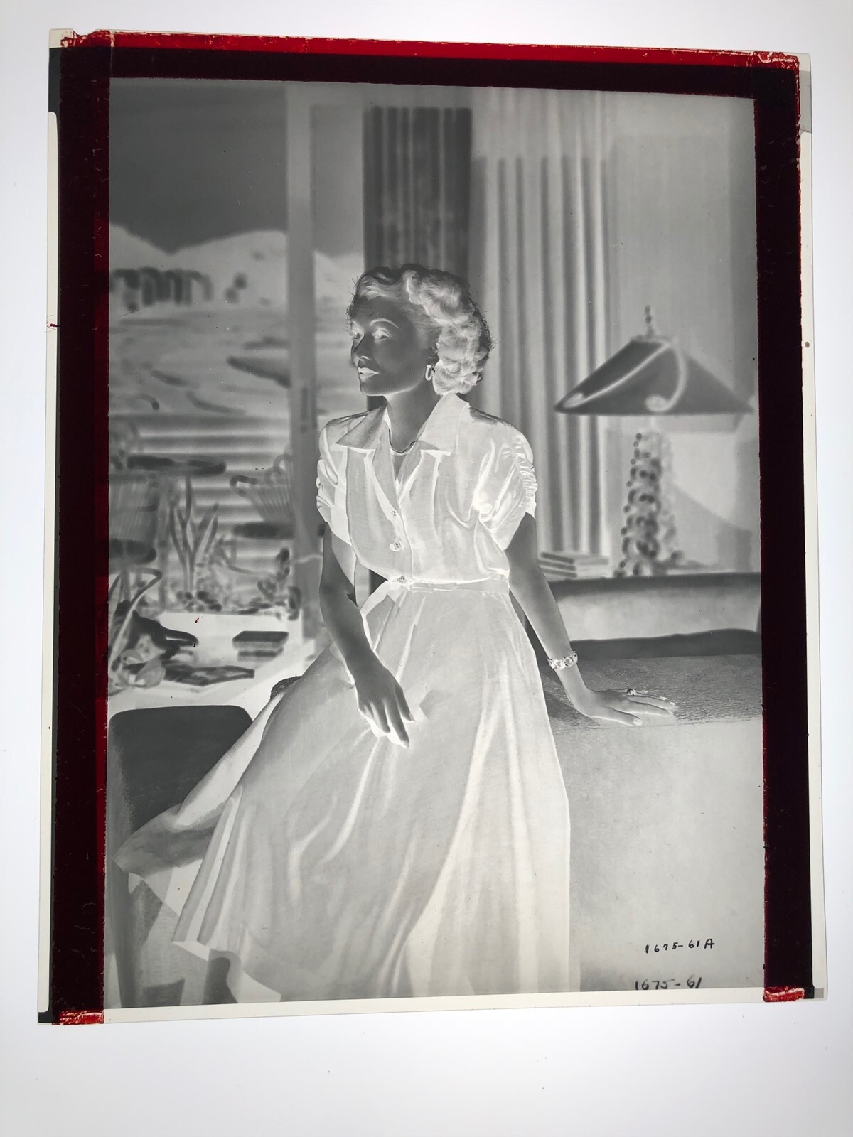 Constance Bennett elegant cocktail dress Vintage Studio 8x10 Duplicate Negative with hand applied India Ink Code This is a vintage studio or photographer's 8x10 inch black and white photographic negative from our historic archive. This vintage duplicate negative was created from the original camera negative by the studio or photographer in order to make prints and use for publications. This is a real collector's item and would make superb quality photographs or prints. This would also be a great addition to any collection or image archive. This black and white photographic negative is in Excellent condition. This collector's item is being sold from one collector to another, no rights are given or implied. Silver Screen Mementos are gradually releasing from their vast archives thousands of original photographs, transparencies, negatives, slides, lobby cards and other movie or television memorabilia.
