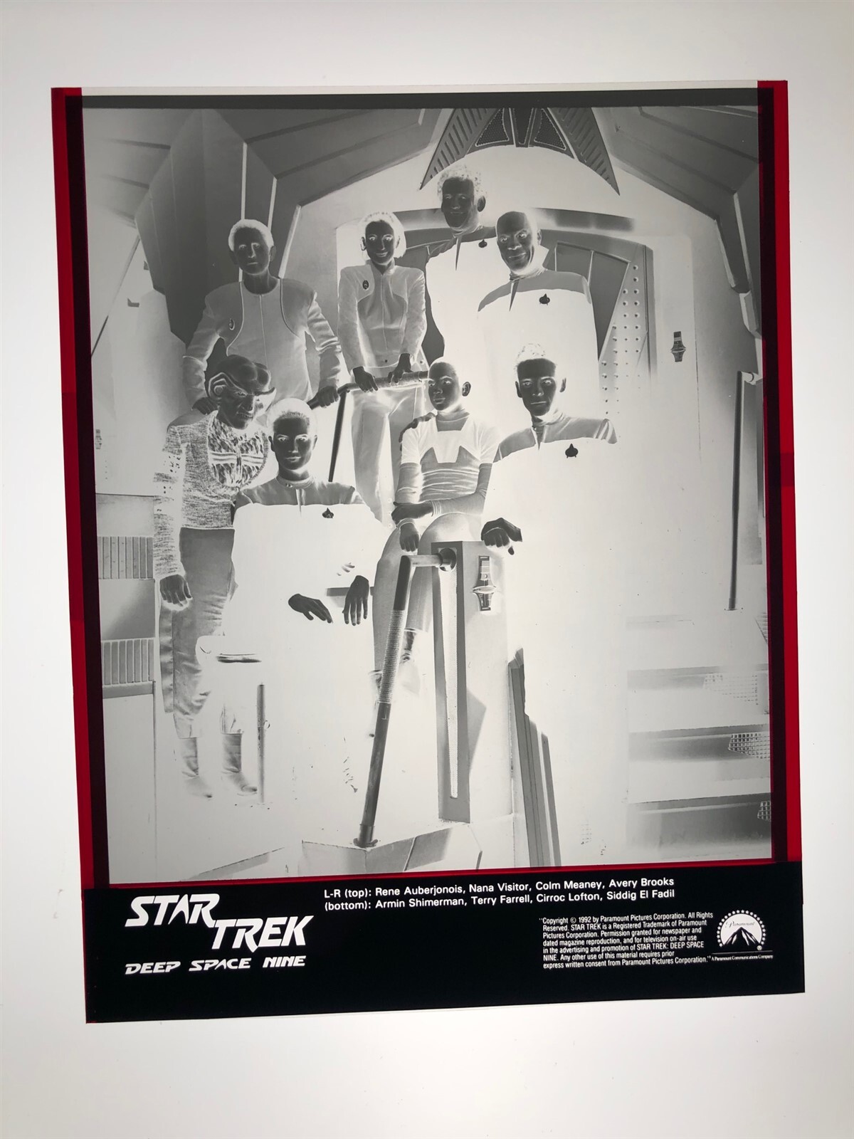 Star Trek Deep Space Nine Terry Farrell Avery Brooks cast Original 8x10 NegativeThis is an original studio or photographer's 8x10 inches black and white photographic negative from our historic archive. This is a real collector's item and would make superb quality photographs or prints. This would also be a great addition to any collection or image archive. This original black and white photographic negative is in Excellent condition. This collector's item is being sold from one collector to another, no rights are given or implied. Silver Screen Mementos are gradually releasing from their vast archives thousands of original photographs, transparencies, negatives, slides, lobby cards and other movie or television memorabilia.