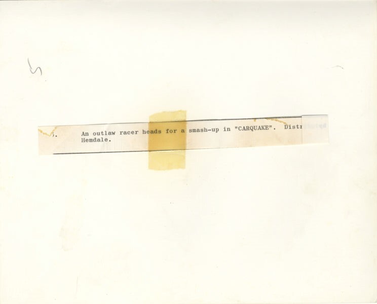 Carquake aka Cannonball Ford Mustang GT Airborne Car Crash Stunt Original 8x10 Photo with Snipe 1976 VG/Near Mint Condition This item is an ORIGINAL 8x10 photo from the historic archives of Silver Screen Mementos. This original photograph was made in the actual year the film, television show or event was produced. The movie studios produced publicity photographs for distribution to the press, photo agencies and publicity departments to advertise the film/tv show or event. Very often original photos have press release information on the reverse of the photo - movie credits, description of the scene, event and people involved. This is a historic piece of cinema art and is being offered from one collector to another, no rights given or implied. Silver Screen are gradually releasing thousands of Original Photographs, Transparencies, Negatives, Lobby Cards, Posters, Magazines and other memorabilia from our historic archive.