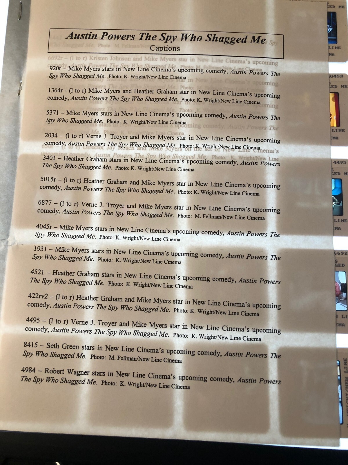 Austin Powers Spy Who Shagged Men Collection of 20 Original 35mm Transparency Slides starring Mike Myers, Heather Graham and Robert Wagner. This listing is for all 20 Original 35mm Transparency slides and the captions sheet. This is a real collectors item and would make superb quality photographs or prints. This would also be a great addition to any collection or image archive. The transparency is in excellent condition. This collectors item is being sold from one collector to another, no rights are given or implied. Silver Screen Archives are gradually releasing from their vast archives thousands of original photographs, transparencies, negatives, slides, lobby cards and other movie or television memorabilia. Listing and template services provided by inkFrog
