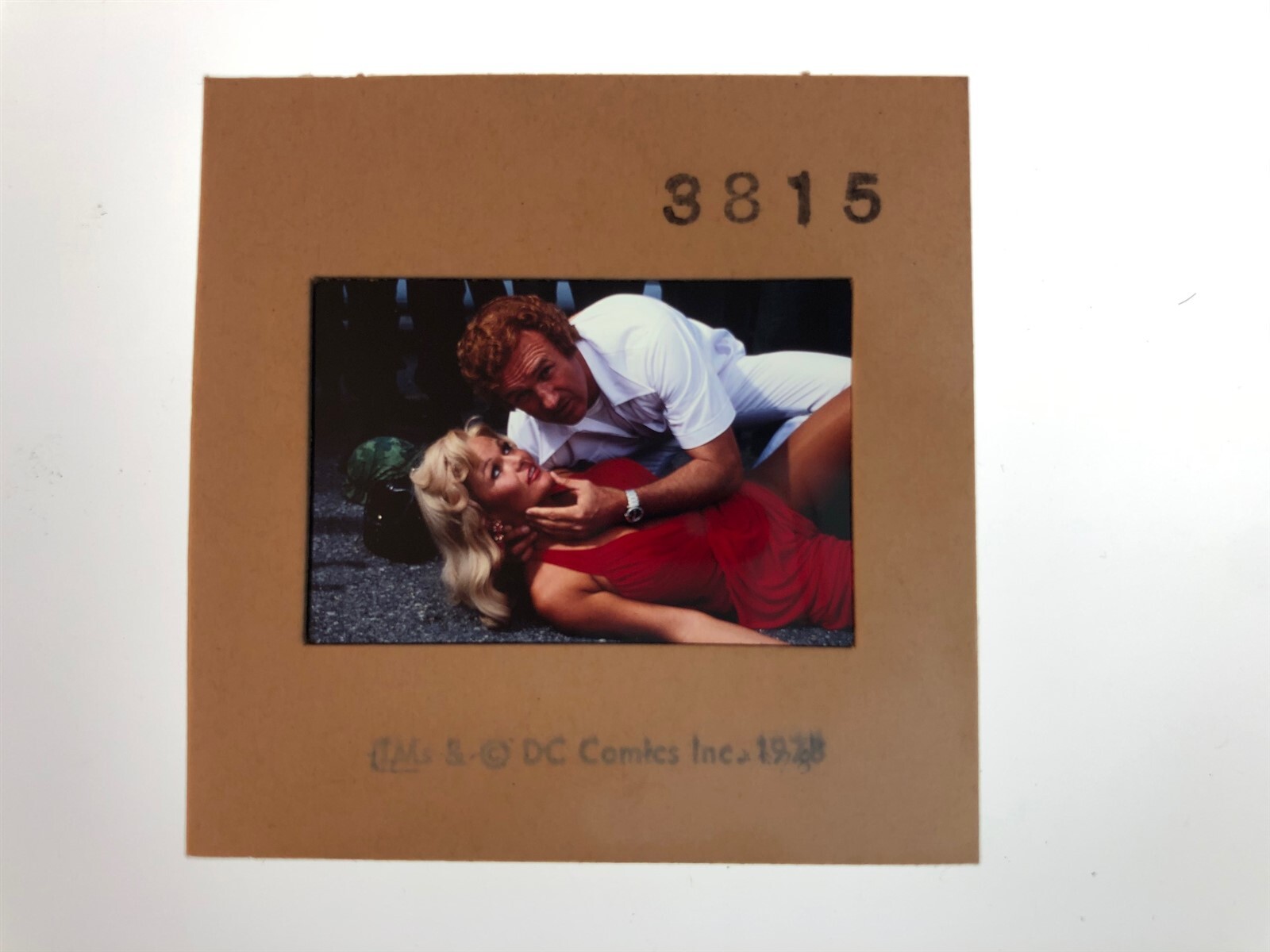Superman The Movie Gene Hackman, Valerie Perrine Busty Red Dress Original 35mm Camera Transparency in DC Comics Stamped Mount 1978, very rare!This is an Original studio or photographer's 35 mm color slide transparency from our historic archive. This is a real collector's item and would make superb quality photographs or prints. This would also be a great addition to any collection or image archive. This original negative color slide transparency is in Excellent condition. This collector's item is being sold from one collector to another, no rights are given or implied. Silver Screen Mementos are gradually releasing from their vast archives thousands of original photographs, transparencies, negatives, slides, lobby cards and other movie or television memorabilia.