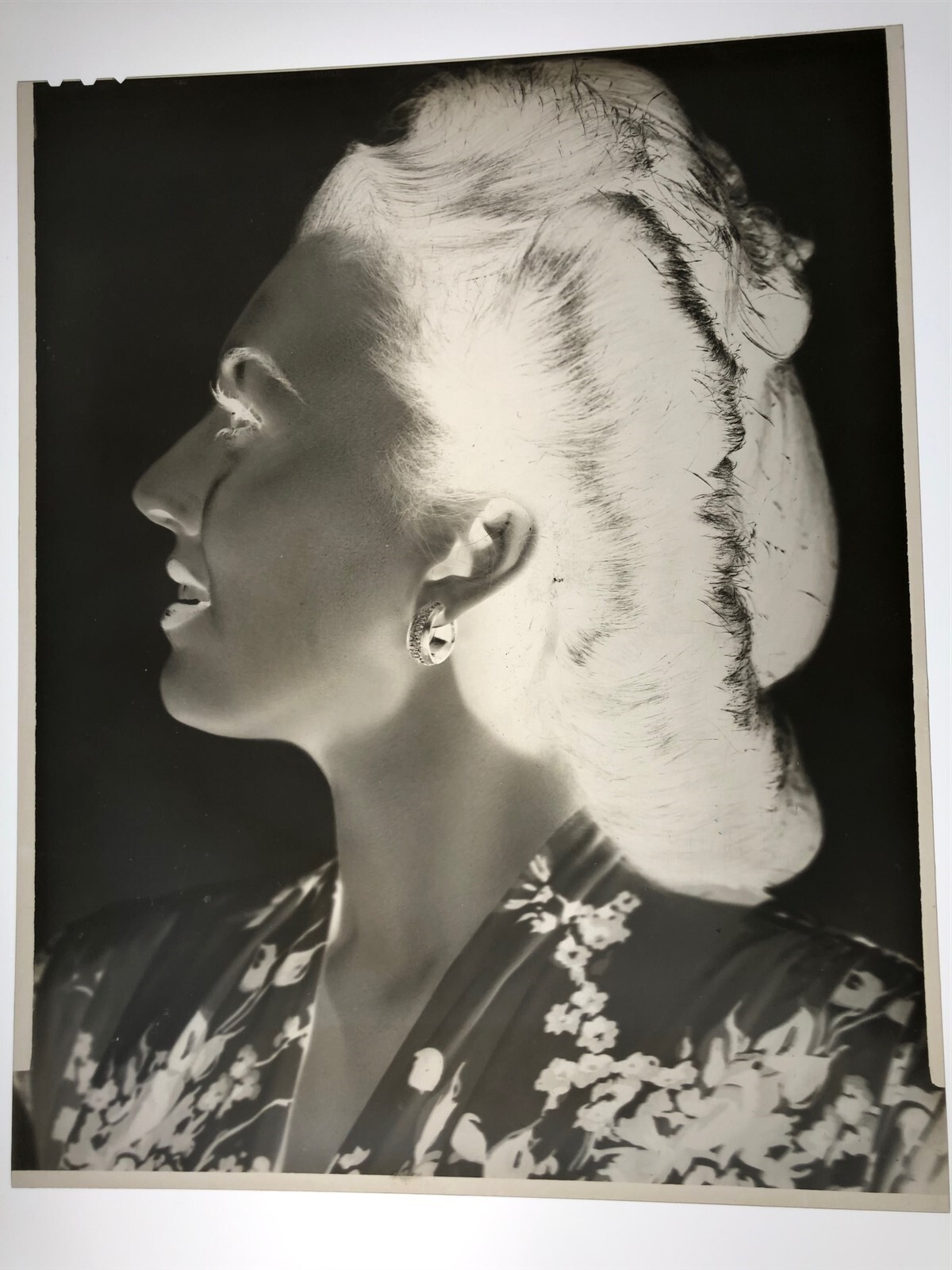 Ginny Simms Singer and Actress Glamour Profile Pose Vintage 8x10 Studio Negative This is a vintage studio or photographer's 8x10 inch black and white photographic negative from our historic archive. This vintage duplicate negative was created from the original camera negative by the studio or photographer in order to make prints and use for publications. This is a real collector's item and would make superb quality photographs or prints. This would also be a great addition to any collection or image archive. This black and white photographic negative is in Excellent condition. This collector's item is being sold from one collector to another, no rights are given or implied. Silver Screen Mementos are gradually releasing from their vast archives thousands of original photographs, transparencies, negatives, slides, lobby cards and other movie or television memorabilia.