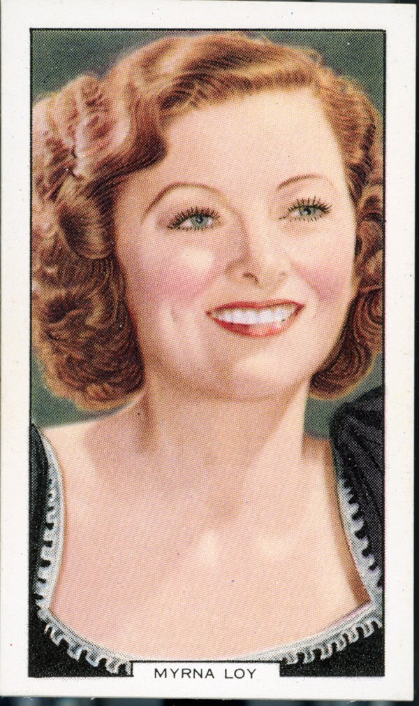 Myrna Loy Vintage Original Gallaher Cigarette Trading Card 1935 Rare Near MINT , beautiful card This is a vintage original cigarette card that was issued by the Tobacco company to promote their brand of cigarettes. These were inserted into the cigarette packets and have become collectors items. Silver Screen are gradually releasing thousands of Original Photographs, Transparencies, Negatives, Lobby Cards, Posters, Magazines and other memorabilia from our historic archive.