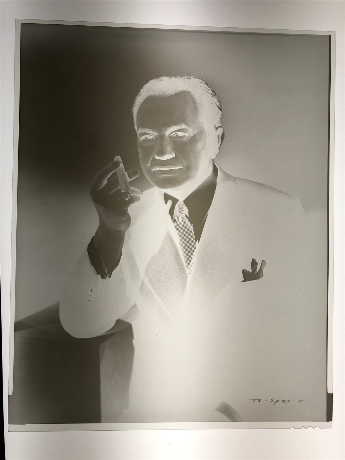 Edward G. Robinson Classic Studio Portrait holding cigar Vintage Duplicate 8x10 Negative This is a vintage studio or photographer's 8x10 inch black and white photographic negative from our historic archive. This vintage duplicate negative was created from the original camera negative by the studio or photographer in order to make prints and use for publications. This is a real collector's item and would make superb quality photographs or prints. This would also be a great addition to any collection or image archive. This black and white photographic negative is in Excellent condition. This collector's item is being sold from one collector to another, no rights are given or implied. Silver Screen Mementos are gradually releasing from their vast archives thousands of original photographs, transparencies, negatives, slides, lobby cards and other movie or television memorabilia.