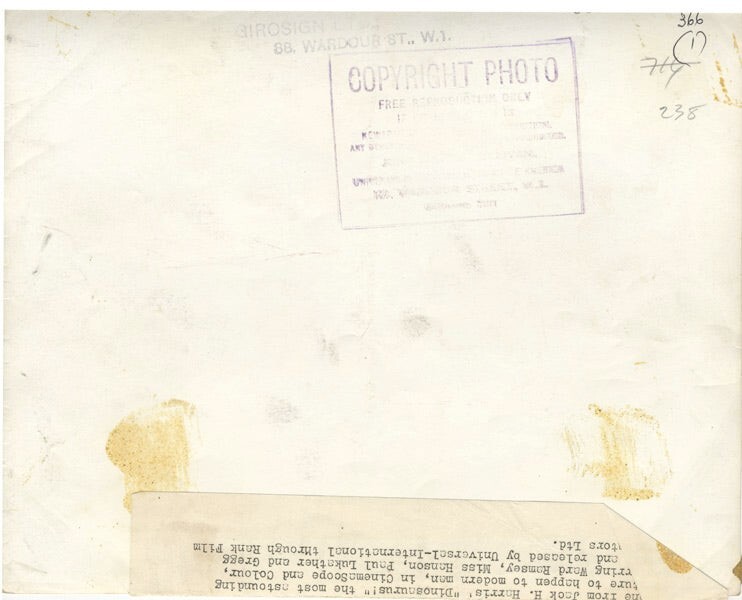 Dinosaurus! Bare chested Neanderthal Caveman Gregg Martell, Kristina Hanson Original 8x10 Photo Stamped with Snipe 1960 Good Condition (taped snipe on bottom margin, creases, wear to edges) This item is an ORIGINAL 8x10 photo from the historic archives of Silver Screen Mementos. This original photograph was made in the actual year the film, television show or event was produced. The movie studios produced publicity photographs for distribution to the press, photo agencies and publicity departments to advertise the film/tv show or event. Very often original photos have press release information on the reverse of the photo - movie credits, description of the scene, event and people involved. This is a historic piece of cinema art and is being offered from one collector to another, no rights given or implied. Silver Screen are gradually releasing thousands of Original Photographs, Transparencies, Negatives, Lobby Cards, Posters, Magazines and other memorabilia from our historic archive.