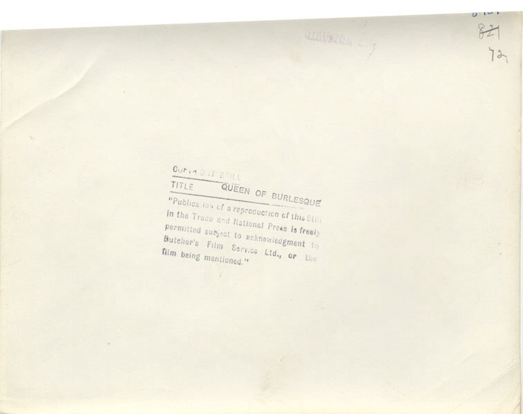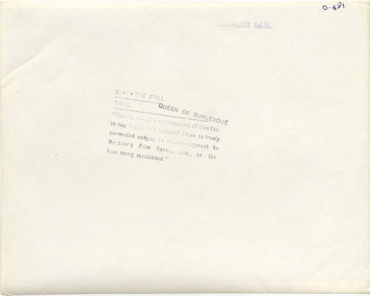 Queen of Burlesque 1946 Evely Ankers Carleton G Young Original 8x10 Photo stamped This item is an ORIGINAL 8x10 photo from the historic archives of Silver Screen Mementos. This original photograph was made in the actual year the film, television show or event was produced. The movie studios produced publicity photographs for distribution to the press, photo agencies and publicity departments to advertise the film/tv show or event. Very often original photos have press release information on the reverse of the photo - movie credits, description of the scene, event and people involved. This is a historic piece of cinema art and is being offered from one collector to another, no rights given or implied. Silver Screen are gradually releasing thousands of Original Photographs, Transparencies, Negatives, Lobby Cards, Posters, Magazines and other memorabilia from our historic archive.
