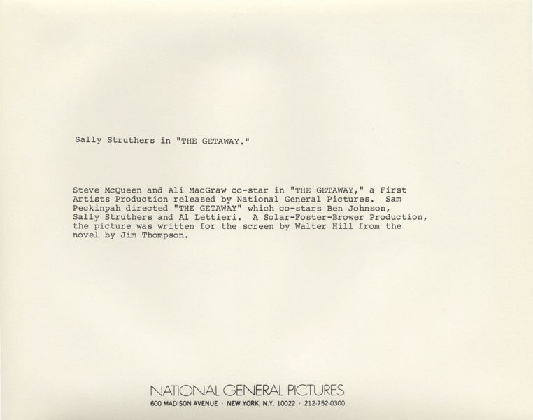 Sally Struthers Sultry Blonde Bombshell The Getaway 1972 Original Stamped 8x10 Photo VG/Near Mint Condition This item is an ORIGINAL 8x10 photo from the historic archives of Silver Screen Mementos. This original photograph was made in the actual year the film, television show or event was produced. The movie studios produced publicity photographs for distribution to the press, photo agencies and publicity departments to advertise the film/tv show or event. Very often original photos have press release information on the reverse of the photo - movie credits, description of the scene, event and people involved. This is a historic piece of cinema art and is being offered from one collector to another, no rights given or implied. Silver Screen are gradually releasing thousands of Original Photographs, Transparencies, Negatives, Lobby Cards, Posters, Magazines and other memorabilia from our historic archive.