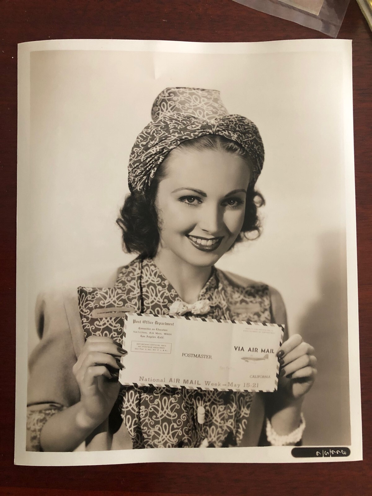 June Lang portrait promotes US Post Office Original 8x10 Camera Negative & Photo - This if for an Original 8x10 inch Nitrate Camera Negative with retouched highlights and an original 8x10 photograph. This is an original studio or photographer's 8x10 inches black and white photographic negative from our historic archive. This is a real collector's item and would make superb quality photographs or prints. This would also be a great addition to any collection or image archive. This original black and white photographic negative is in Excellent condition. This collector's item is being sold from one collector to another, no rights are given or implied. Silver Screen Mementos are gradually releasing from their vast archives thousands of original photographs, transparencies, negatives, slides, lobby cards and other movie or television memorabilia.