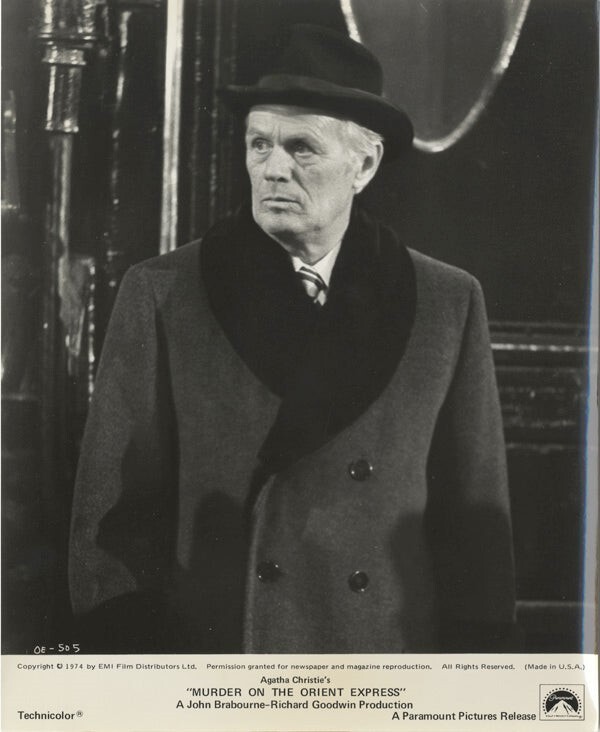 Murder on the Orient Express Richard Widmark Original 8x10 Photo with Snipe 1974 Near Mint Condition This item is an ORIGINAL 8x10 photo from the historic archives of Silver Screen Mementos. This original photograph was made in the actual year the film, television show or event was produced. The movie studios produced publicity photographs for distribution to the press, photo agencies and publicity departments to advertise the film/tv show or event. Very often original photos have press release information on the reverse of the photo - movie credits, description of the scene, event and people involved. This is a historic piece of cinema art and is being offered from one collector to another, no rights given or implied. Silver Screen are gradually releasing thousands of Original Photographs, Transparencies, Negatives, Lobby Cards, Posters, Magazines and other memorabilia from our historic archive.