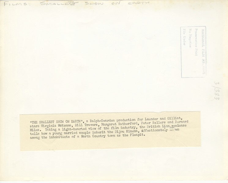 The Smallest Show On Earth Bill Travers Virginia McKenna Original 8x10 Photo with snipe VG/Near Mint Condition This item is an ORIGINAL 8x10 photo from the historic archives of Silver Screen Mementos. This original photograph was made in the actual year the film, television show or event was produced. The movie studios produced publicity photographs for distribution to the press, photo agencies and publicity departments to advertise the film/tv show or event. Very often original photos have press release information on the reverse of the photo - movie credits, description of the scene, event and people involved. This is a historic piece of cinema art and is being offered from one collector to another, no rights given or implied. Silver Screen are gradually releasing thousands of Original Photographs, Transparencies, Negatives, Lobby Cards, Posters, Magazines and other memorabilia from our historic archive.
