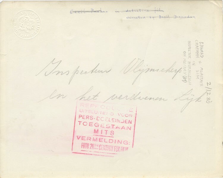 Inspector Hornleigh on Holiday 1939 Alastair Sim Edward Chapman playing snooker pool Original 8x10 Photo stamped in Good/VG Condition (embossed stamp in top corner) This item is an ORIGINAL 8x10 photo from the historic archives of Silver Screen Mementos. This original photograph was made in the actual year the film, television show or event was produced. The movie studios produced publicity photographs for distribution to the press, photo agencies and publicity departments to advertise the film/tv show or event. Very often original photos have press release information on the reverse of the photo - movie credits, description of the scene, event and people involved. This is a historic piece of cinema art and is being offered from one collector to another, no rights given or implied. Silver Screen are gradually releasing thousands of Original Photographs, Transparencies, Negatives, Lobby Cards, Posters, Magazines and other memorabilia from our historic archive.