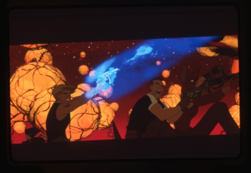 Titan A.E. Animation 2000 Original 35mm Transparency in stamped mountThis is an original studio or photographer's 35 mm color slide transparency from our historic archive. This is a real collector's item and would make superb quality photographs or prints. This would also be a great addition to any collection or image archive. This original color slide transparency is in Excellent condition. This collector's item is being sold from one collector to another, no rights are given or implied. Silver Screen Mementos are gradually releasing from their vast archives thousands of original photographs, transparencies, negatives, slides, lobby cards and other movie or television memorabilia.