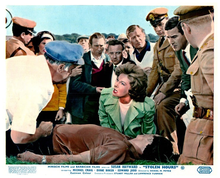 passion original lobby card yvonne de carlo embracing cornel wilde 1954 western