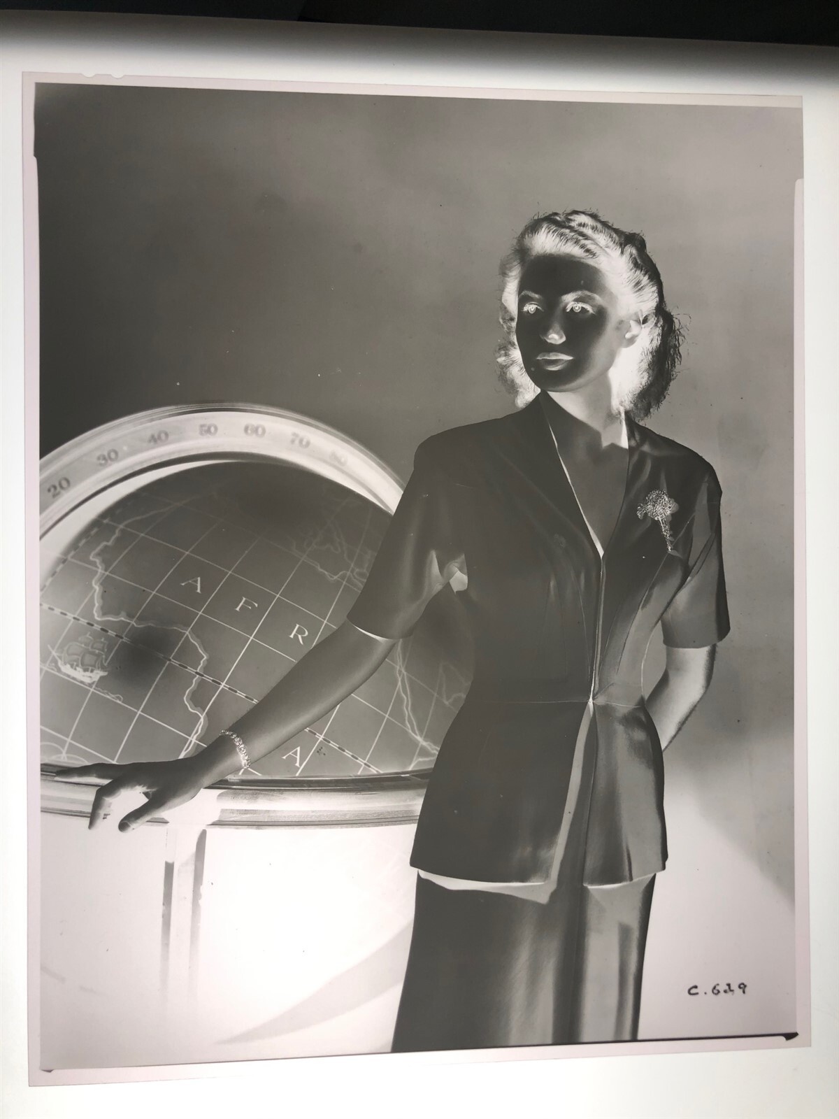 Ingrid Bergman elegant portrait by world globe Vintage Studio Duplicate 8x10 Negative This is a vintage studio 8x10 inch black and white photographic negative from our historic archive. This vintage negative was produced by the studio directly from the original camera negative. This is a real collector's item and would make superb quality photographs or prints. This would also be a great addition to any collection or image archive. This black and white photographic negative is in Excellent condition. This collector's item is being sold from one collector to another, no rights are given or implied. Silver Screen Mementos are gradually releasing from their vast archives thousands of original photographs, transparencies, negatives, slides, lobby cards and other movie or television memorabilia.