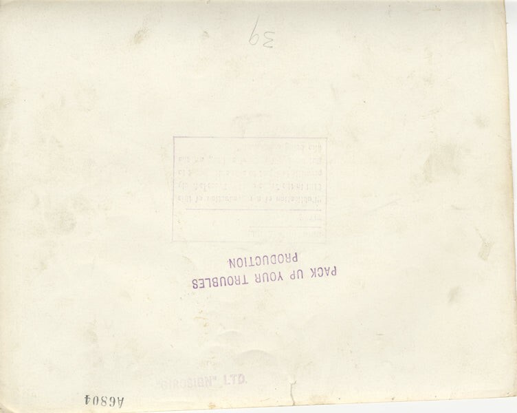 Pack Up Your Troubles 1940 Wylie Watson, Patricia Roc with rifle World War 2 Original 8x10 Photo Stamped VG Condition This item is an ORIGINAL 8x10 photo from the historic archives of Silver Screen Mementos. This original photograph was made in the actual year the film, television show or event was produced. The movie studios produced publicity photographs for distribution to the press, photo agencies and publicity departments to advertise the film/tv show or event. Very often original photos have press release information on the reverse of the photo - movie credits, description of the scene, event and people involved. This is a historic piece of cinema art and is being offered from one collector to another, no rights given or implied. Silver Screen are gradually releasing thousands of Original Photographs, Transparencies, Negatives, Lobby Cards, Posters, Magazines and other memorabilia from our historic archive.