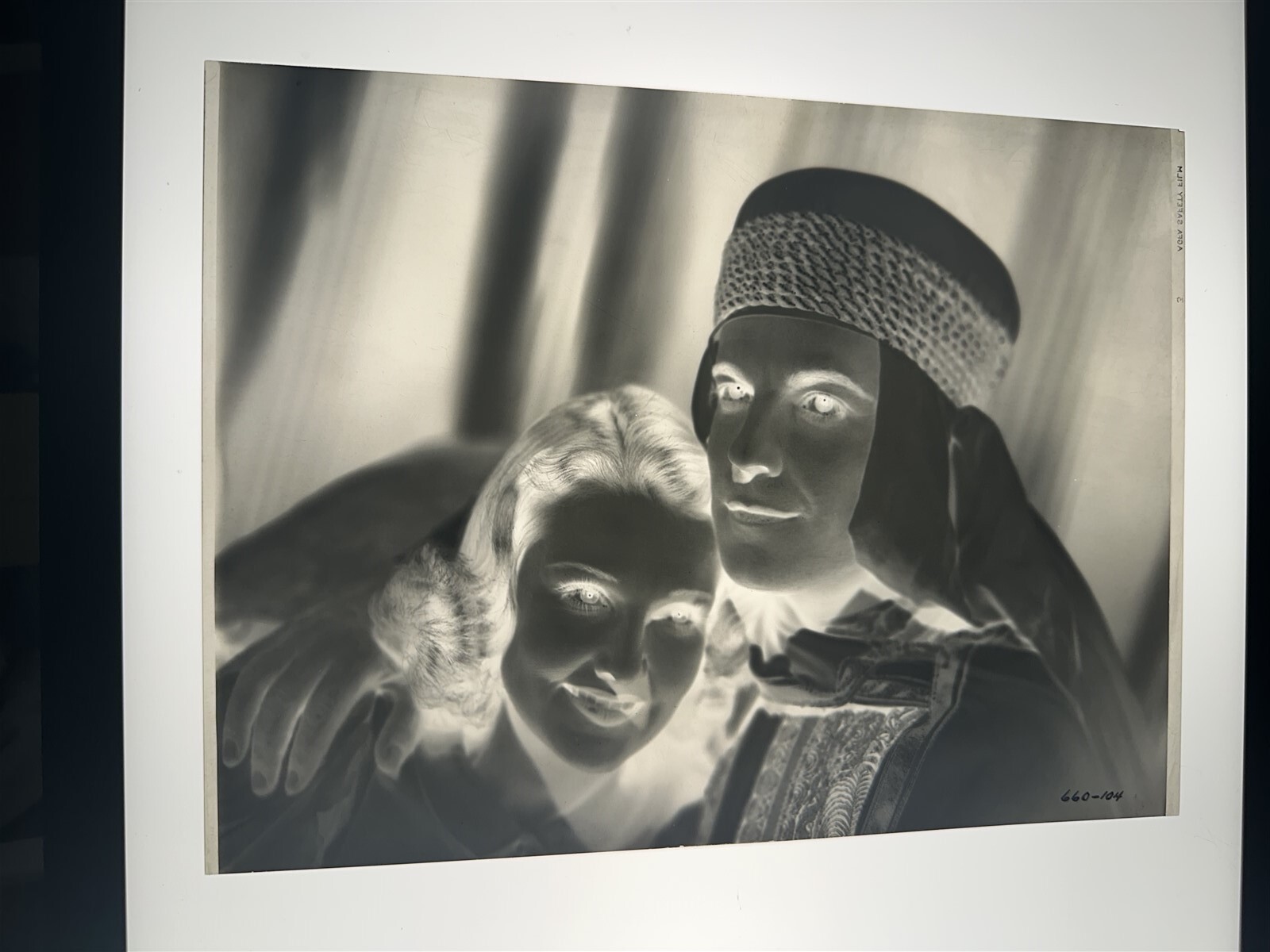 The Sheik Steps Out 1937 Ramon Novarro Lola Lane Origiginal 8x10 Negative with hand applied India ink code - very rare Original Kodak Safety Film 1937 Negative measuring approx 7x10 inches (border trim) and an 8x10 photograph derived from the negative. This is an original studio or photographer's 8x10 inches black and white photographic negative from our historic archive. This is a real collector's item and would make superb quality photographs or prints. This would also be a great addition to any collection or image archive. This original black and white photographic negative is in VG Condition (border trim) condition. This collector's item is being sold from one collector to another, no rights are given or implied. Silver Screen Mementos are gradually releasing from their vast archives thousands of original photographs, transparencies, negatives, slides, lobby cards and other movie or television memorabilia.