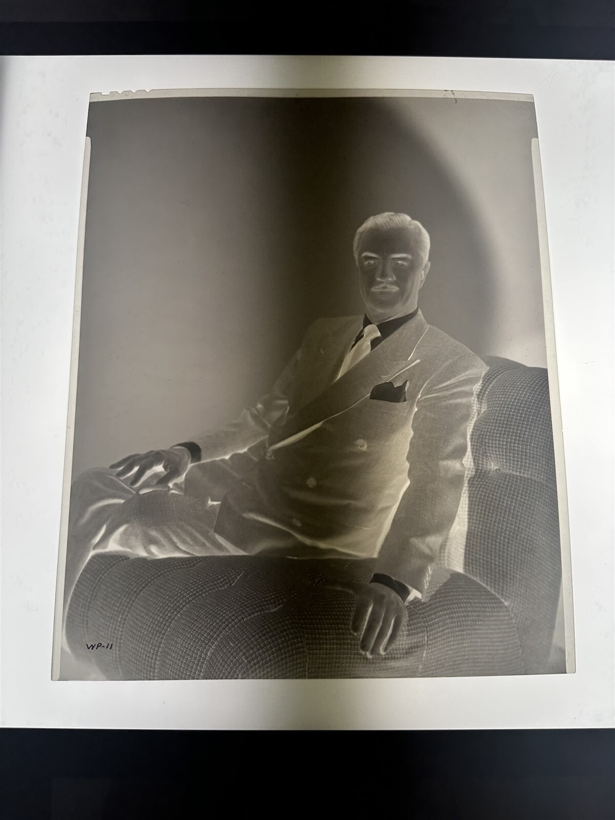 William Powell The Thin Man star Studio Portrait 1940's Original 8x10 Acetate Negative with hand applied Inid Ink CodeThis is an original studio or photographer's 8x10 inches black and white photographic negative from our historic archive. This is a real collector's item and would make superb quality photographs or prints. This would also be a great addition to any collection or image archive. This original black and white photographic negative is in Excellent condition. This collector's item is being sold from one collector to another, no rights are given or implied. Silver Screen Mementos are gradually releasing from their vast archives thousands of original photographs, transparencies, negatives, slides, lobby cards and other movie or television memorabilia.