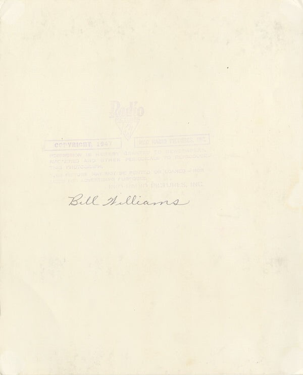 Bill Williams 1947 RKO Pictures Studio Portrait Stamped Original 8x10 Photo VG Condition This item is an ORIGINAL 8x10 photo from the historic archives of Silver Screen Mementos. This original photograph was made in the actual year the film, television show or event was produced. The movie studios produced publicity photographs for distribution to the press, photo agencies and publicity departments to advertise the film/tv show or event. Very often original photos have press release information on the reverse of the photo - movie credits, description of the scene, event and people involved. This is a historic piece of cinema art and is being offered from one collector to another, no rights given or implied. Silver Screen are gradually releasing thousands of Original Photographs, Transparencies, Negatives, Lobby Cards, Posters, Magazines and other memorabilia from our historic archive.
