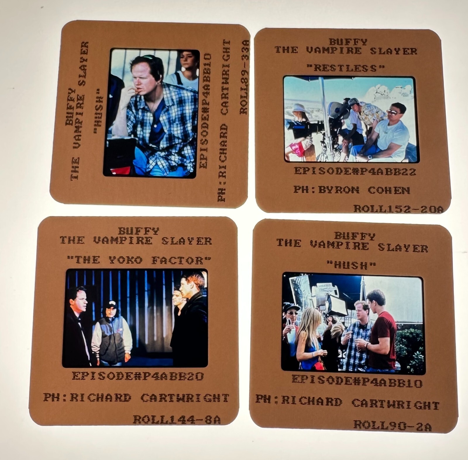 Buffy the Vampire Slayer Collection Lot of 20 Original 35mm Transparency Slides featuring Alyson Hannigan, Anthony Head and show creator Joss Whedon in rare images taken during filming the classic TV series. This listing is for all 20 35mm Transparency Slides in a lot/collection. This is a real collectors item and would make superb quality photographs or prints. This would also be a great addition to any collection or image archive. The transparency is in excellent condition. This collectors item is being sold from one collector to another, no rights are given or implied. Silver Screen Archives are gradually releasing from their vast archives thousands of original photographs, transparencies, negatives, slides, lobby cards and other movie or television memorabilia.