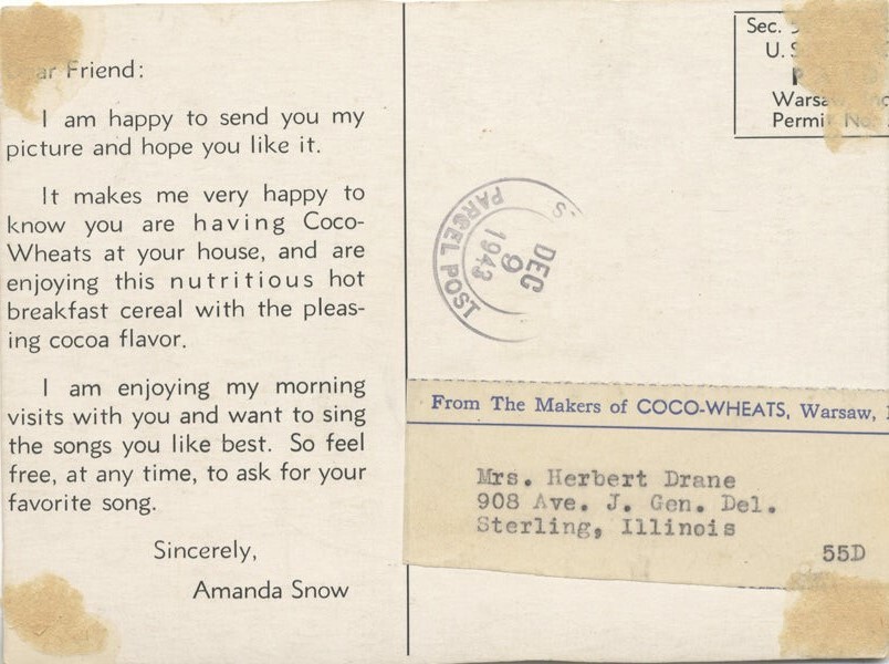 Amanda Snow WLS Chicago Country Gospel Singer Original Autograph Signed 5x7 inch approx Photo Postcard dated 1942 This is an authentic vintage autographed item hand signed by the celebrity , not a copy. Silver Screen are gradually releasing thousands of Original Photographs, Transparencies, Negatives, Lobby Cards, Posters, Magazines and other memorabilia from our historic archive.