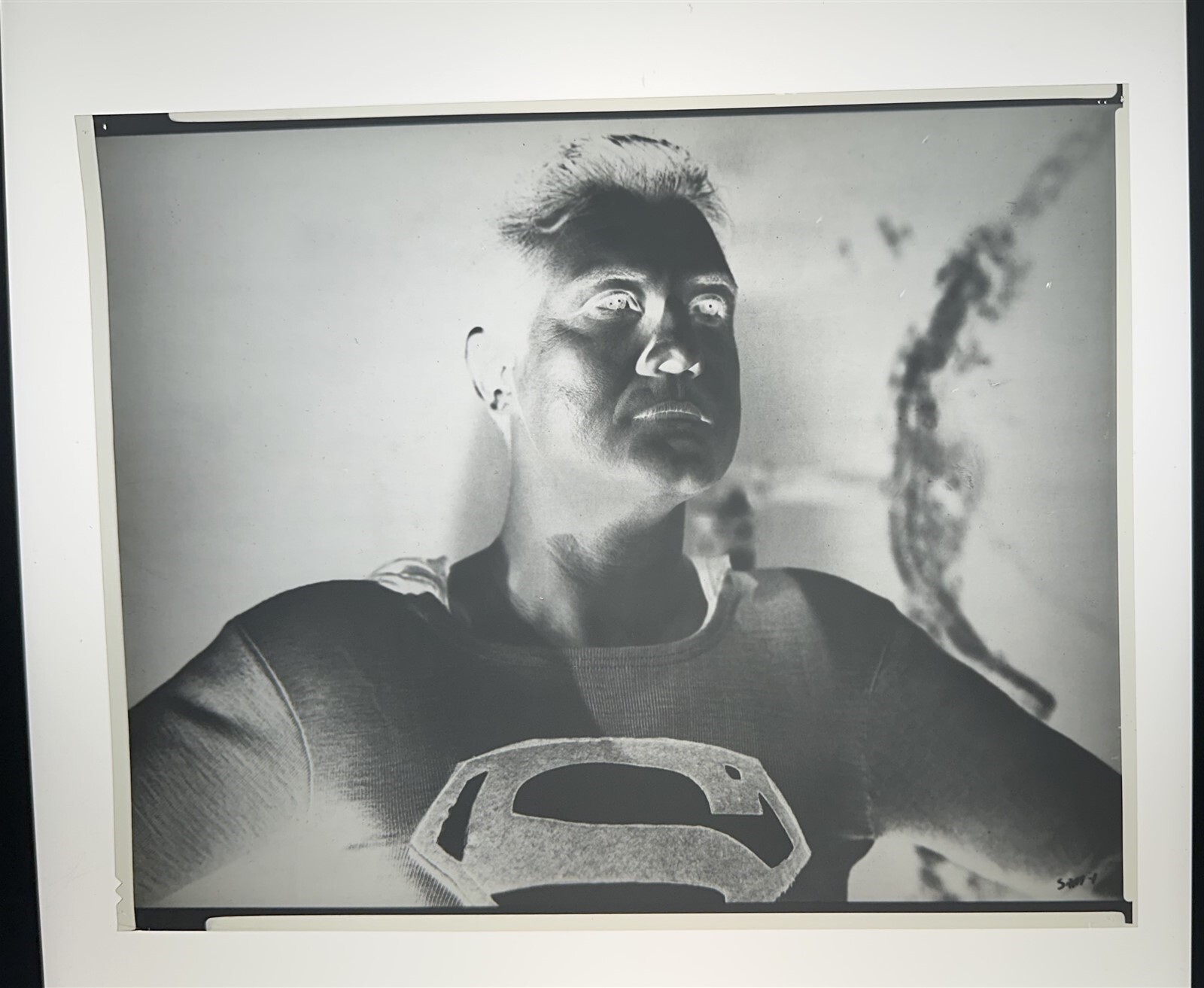 Adventures of Superman TV George Reeves in costume Vintage 8x10 Studio Negative This is a vintage studio or photographer's 8x10 inch black and white photographic negative from our historic archive. This vintage duplicate negative was created from the original camera negative by the studio or photographer in order to make prints and use for publications. This is a real collector's item and would make superb quality photographs or prints. This would also be a great addition to any collection or image archive. This black and white photographic negative is in Excellent condition. This collector's item is being sold from one collector to another, no rights are given or implied. Silver Screen Mementos are gradually releasing from their vast archives thousands of original photographs, transparencies, negatives, slides, lobby cards and other movie or television memorabilia.