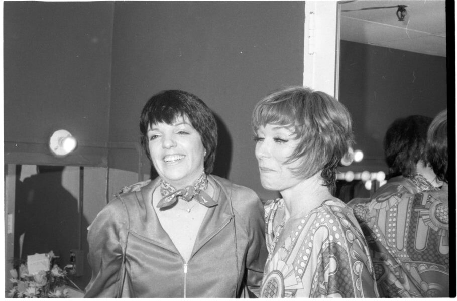 Shirley MacLaine, Liza Minnelli Candid Backstage Pose 1976 Broadway Show Party Shirley MacLaine Live at the Palace Theatre New York City Original 35mm Camera Negative This is an original studio or photographer's 35 mm black and white photographic negative from our historic archive. This is a real collector's item and would make superb quality photographs or prints. This would also be a great addition to any collection or image archive. This original black and white photographic negative is in Excellent condition. This collector's item is being sold from one collector to another, no rights are given or implied. Silver Screen Mementos are gradually releasing from their vast archives thousands of original photographs, transparencies, negatives, slides, lobby cards and other movie or television memorabilia.