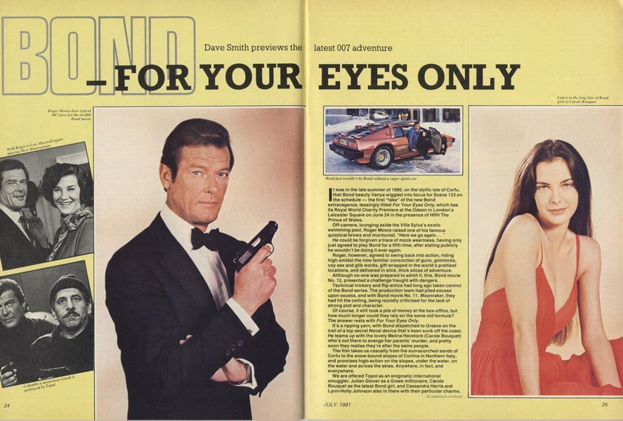 Photoplay Film Magazine Terence Stamp Roger Moore Cover, John Wayne, James Bond, Superman 2, John Huston interview complete issue July 1981 This is the complete issue of the Photoplay film magazine containing color and b/w pictures, articles, interviews, reviews, advertisments and features. This vintage original magazine measures approximately 8.5 x 11 inches. Silver Screen Mementos are gradually releasing from their vast archives thousands of original photographs, transparencies, negatives, slides, lobby cards, magazines, brochures, press books and other movie or television memorabilia