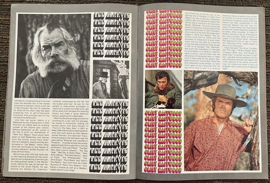 Paint Your Wagon Original Film Brochure Lee Marvin Clint Eastwood Jean Seberg 36 pages of color and b/w photos, articles and info on the classic musical western. A real Collectors’ item being released from our historic archives, this is a complete vintage magazine. Silver Screen Mementos are gradually releasing from their vast archives thousands of original photographs, transparencies, negatives, slides, lobby cards, magazines, brochures, press books and other movie or television memorabilia. This collector's item is being sold from one collector to another, no rights are given or implied. Silver Screen Mementos are gradually releasing from their vast archives thousands of original photographs, transparencies, negatives, slides, lobby cards and other movie or television memorabilia.